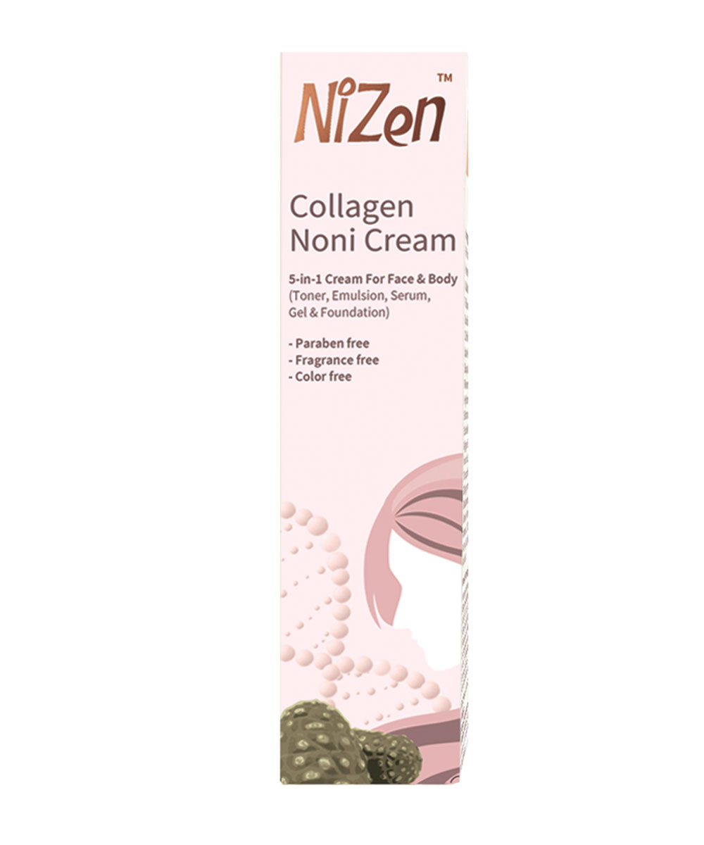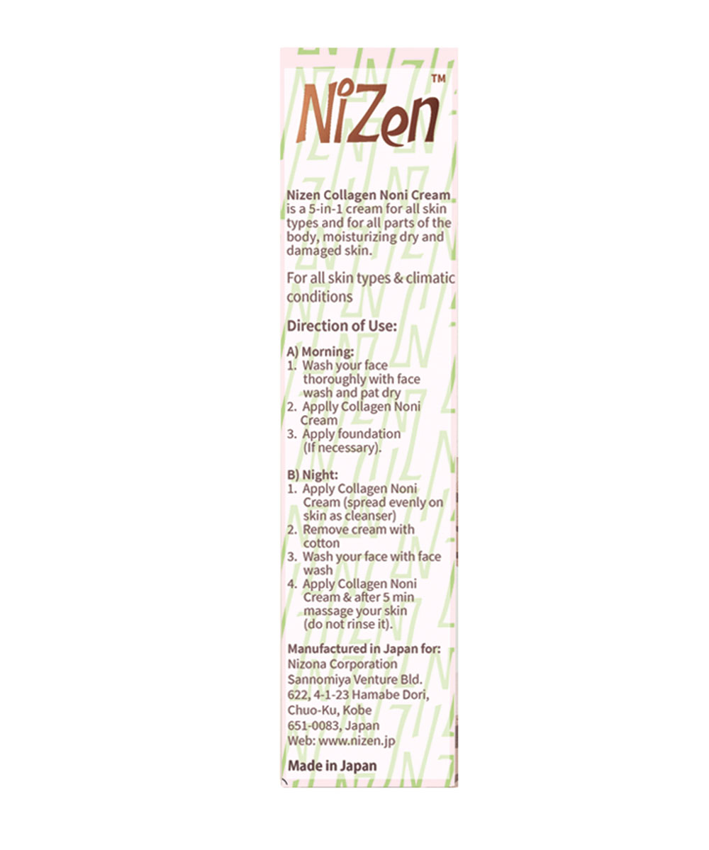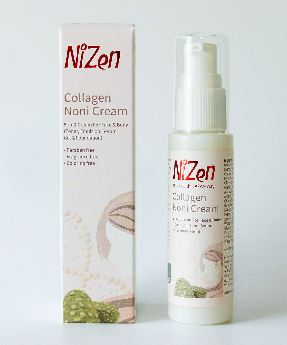Nizen Collagen Noni Cream is a 100% Japanese natural cosmetic cream for the face and body. It is a highly recommended ‘5-in-1 Cream’ (Toner, Emulsifier, Serum, Gel and Primer). Makeup easily in 1 step instead of 5 steps and save time and save energy.